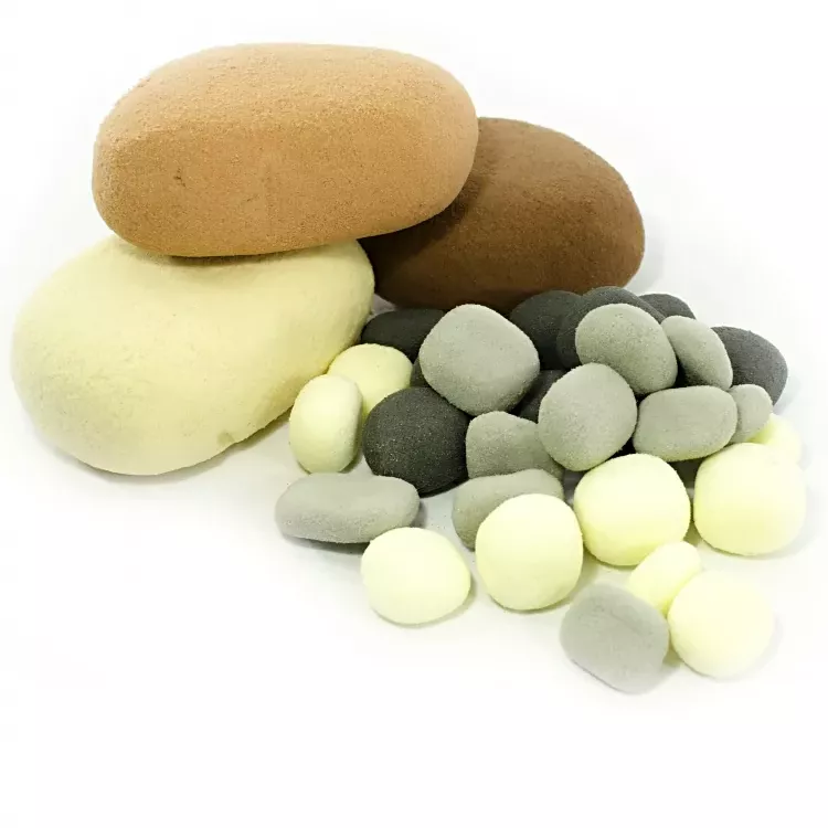 Aranžovací kameny pro mokrou i suchou vazbu o Ø cca 15 cm.Mix ve 3 barvách -šedá, tmavě šedá a slonová kost. V sáčku 3+3+3 kameny.