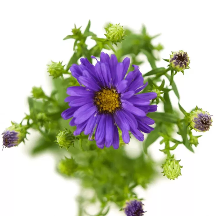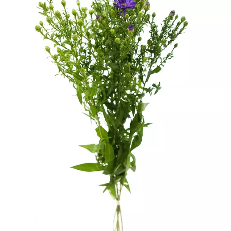 Tak může působit tato krásná dekorační zeleň do kytice. Asterka s fialovými kvítky působí nenápadně, protože se její drobné květy v hustě zeleném trsem trochu ztratí. Přesto si jí všimnete, protože barva květů je zajímavá a výrazná a nádherně doplní podobně barevné květiny.
