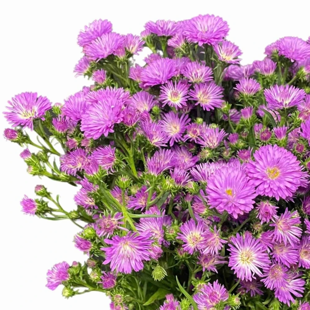 Astra DOUBLE DATE CARMINE je výrazná květina, jejíž hluboce purpurové květy připomínají tradiční anglické zahrady. Každý stonek je korunován mnohačetnými květy, které vytvářejí bujný vizuální efekt.