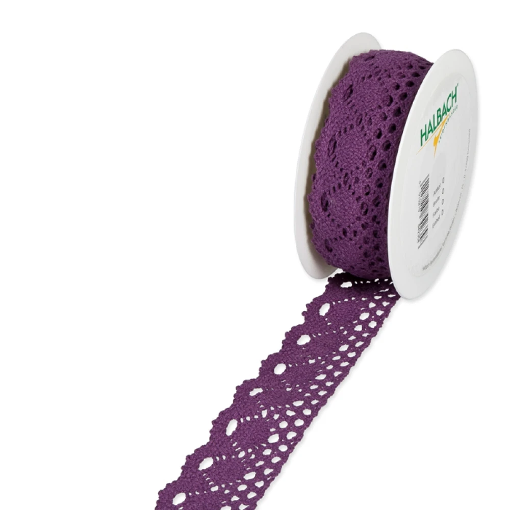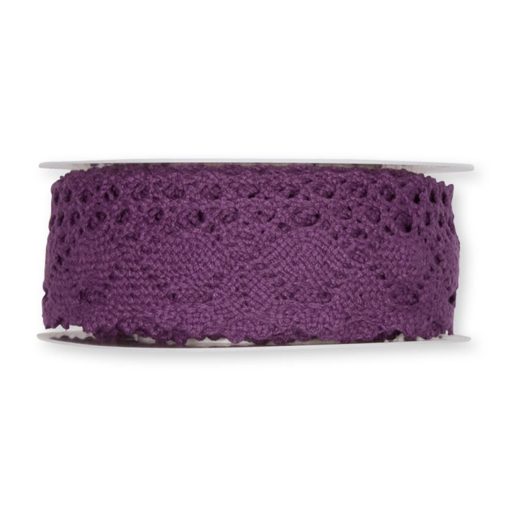 - Bavlněná háčkovaná stuha fialová 38mm x 5m