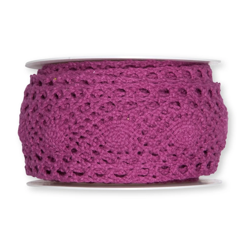 - Bavlněná háčkovaná stuha růžová 55mm x 5m