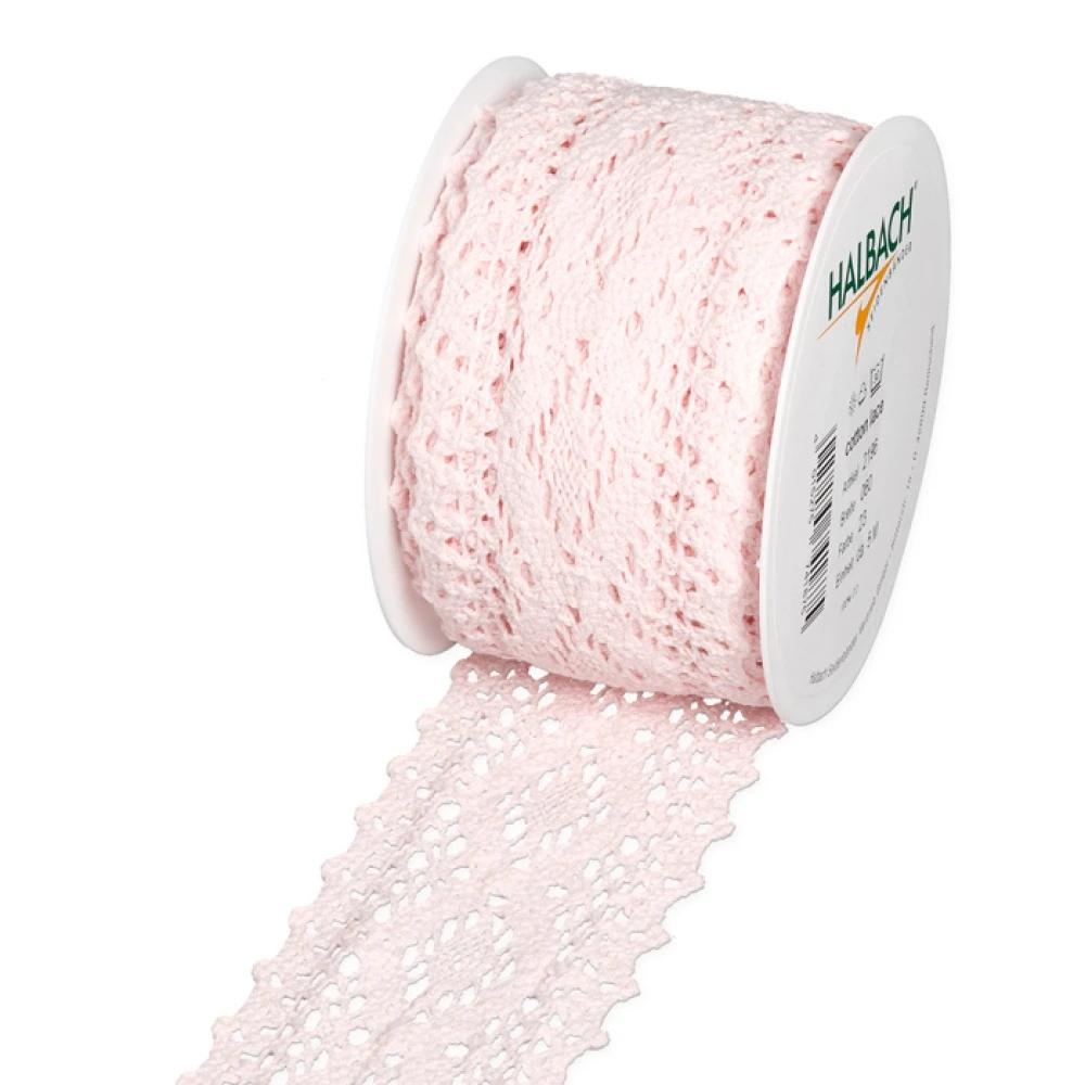 Bavlněná háčkovaná stuha růžová 60mm x 5m