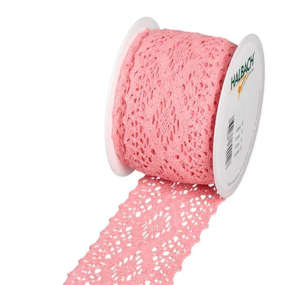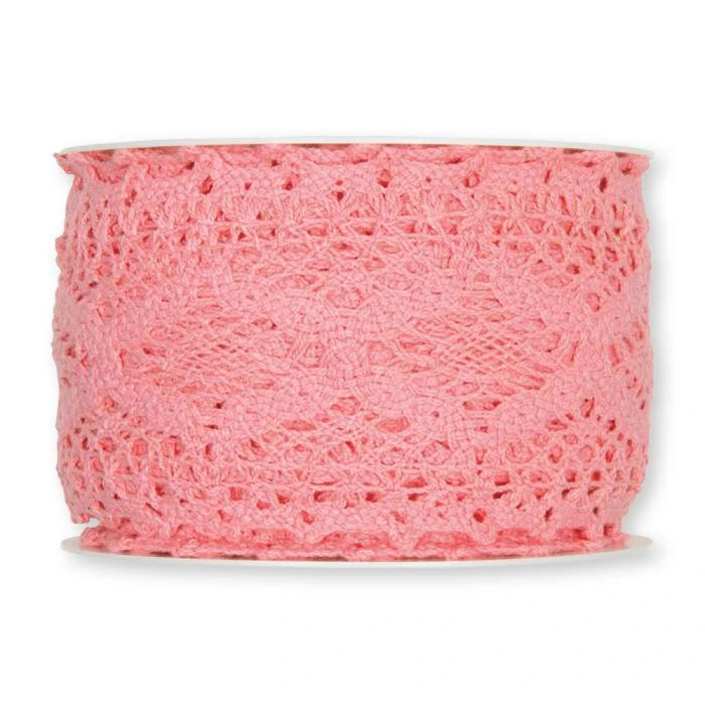 - Bavlněná háčkovaná stuha růžová 60mm x 5m