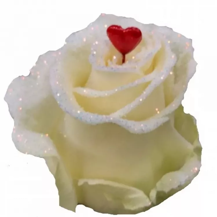 Bílá růže Bling Bling Love s květem o velikosti L, je pravým pokladem z dílny V.I.P. Roses Sassen. Každá růže je s láskou upravena a posypaná třpytivými částicemi, které podtrhují její přirozenou eleganci a dodávají jí luxusní vzhled.