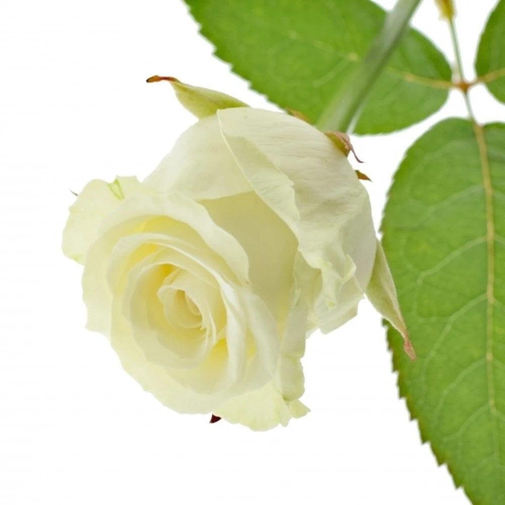 Bílá růže s krémovým nádechem je vhodnou volbou pro kytice slavnostní nebo pro kytice vítací.