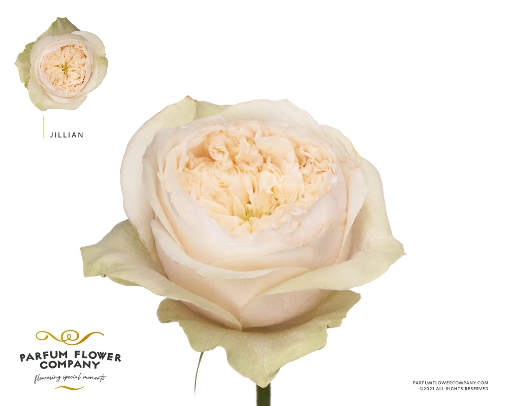 Bílá růže Jillian od Parfum Flower Company přináší eleganci s každým svým květem. Je charakteristická svými něžnými krémovými okvětními lístky, které se směrem do středu mění v bohaté středové vrstvy. Její okvětní lístky jsou srovnatelné s nejdelikátnějšími šaty, které se postupně skládají do nebeského čistého středu.