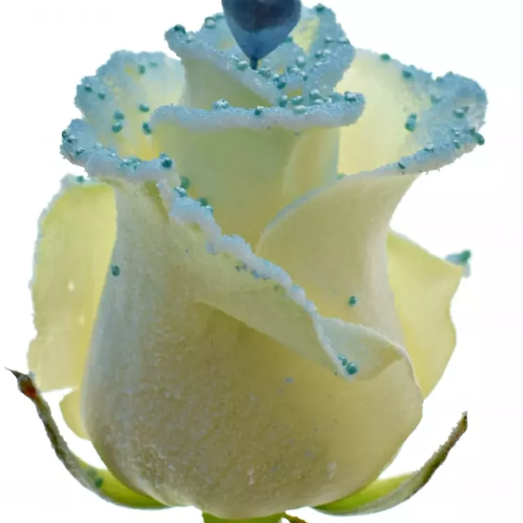 Pearl Blue Love je růže s květem velikosti L, která zdobí svět květin svou neobvyklou krásou. Její čistě bílé lístky jsou pozoruhodně zvýrazněny modrými perličkami a doplněny o srdce na vrcholu, což je práce renomovaných pěstitelů z V.I.P. Roses Sassen.