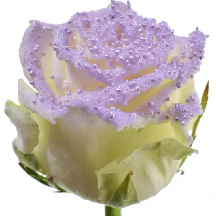 - kraje okvětních plátků zdobí perličkový topping a třpytivé krystalky,