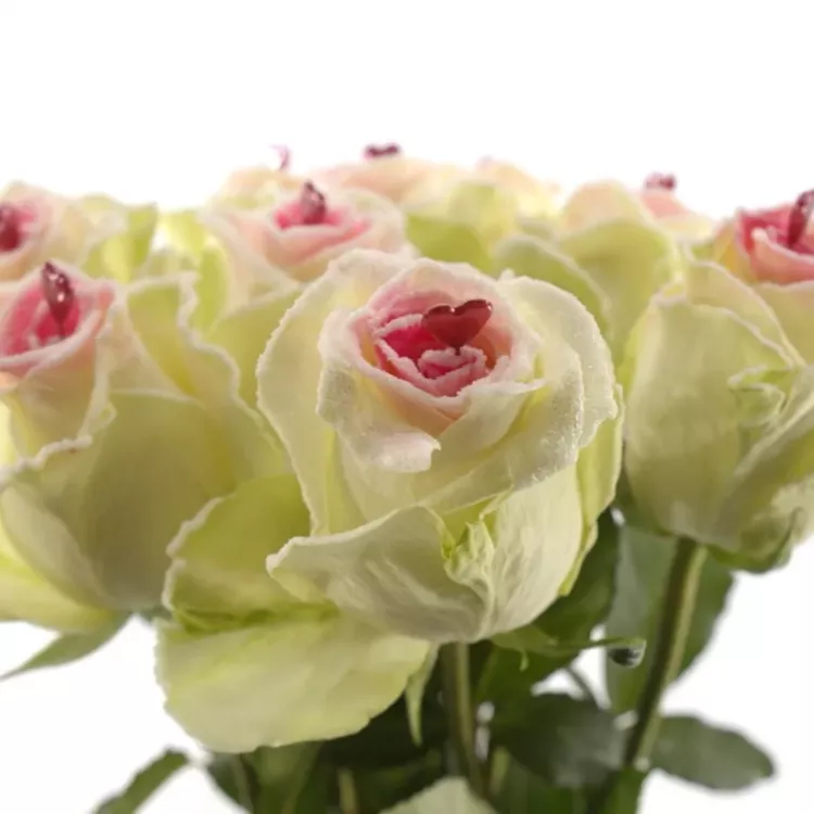 I když upravené, přesto stejně čerstvé jako kterékoliv jiné. Speciální bílé růže Sugar Love mají květy upravené tak, aby působily jak cukrem posypané. Technologie pro úpravu čerstvých růží je zdravotně nezávadná.