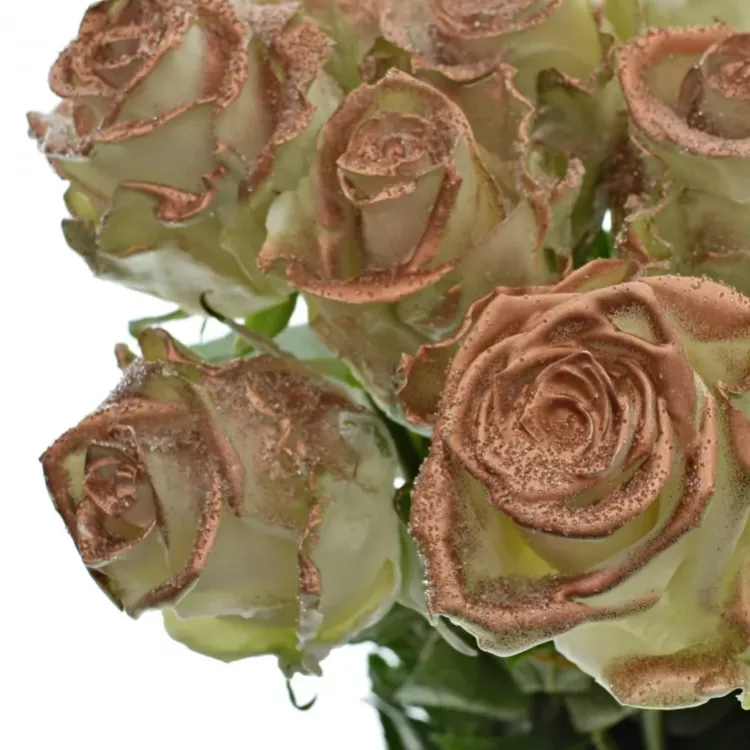 Růže WAX BLING COOPER je příkladem kreativity a elegance. XL velikost květu, pečlivě obaleného v měděném vosku, dává této růži nádech luxusu a originality. Vosková úprava zdůrazňuje každý detail okvětních lístků a zároveň dodává květině dlouhotrvající stabilitu a odolnost. Z holandské dílny V.I.P. Roses Sassen je prémiový výběr, který transformuje klasické krémové nebo bílé růže do uměleckých děl.