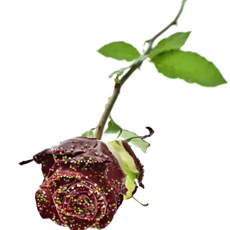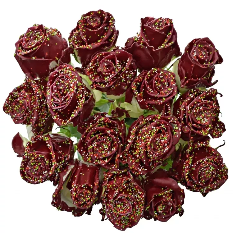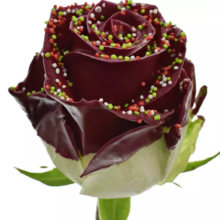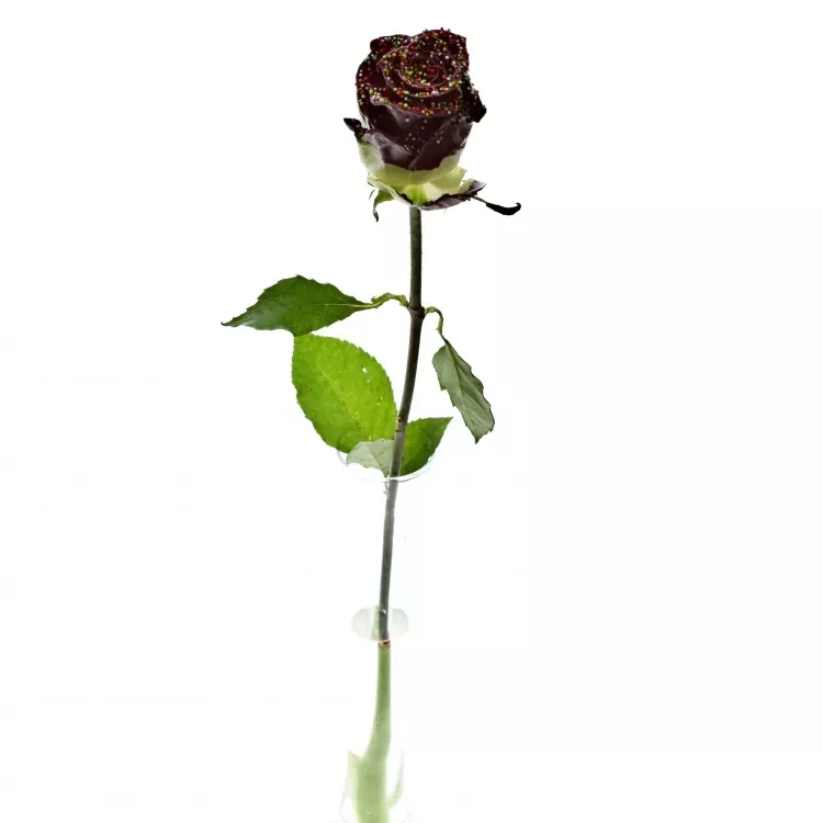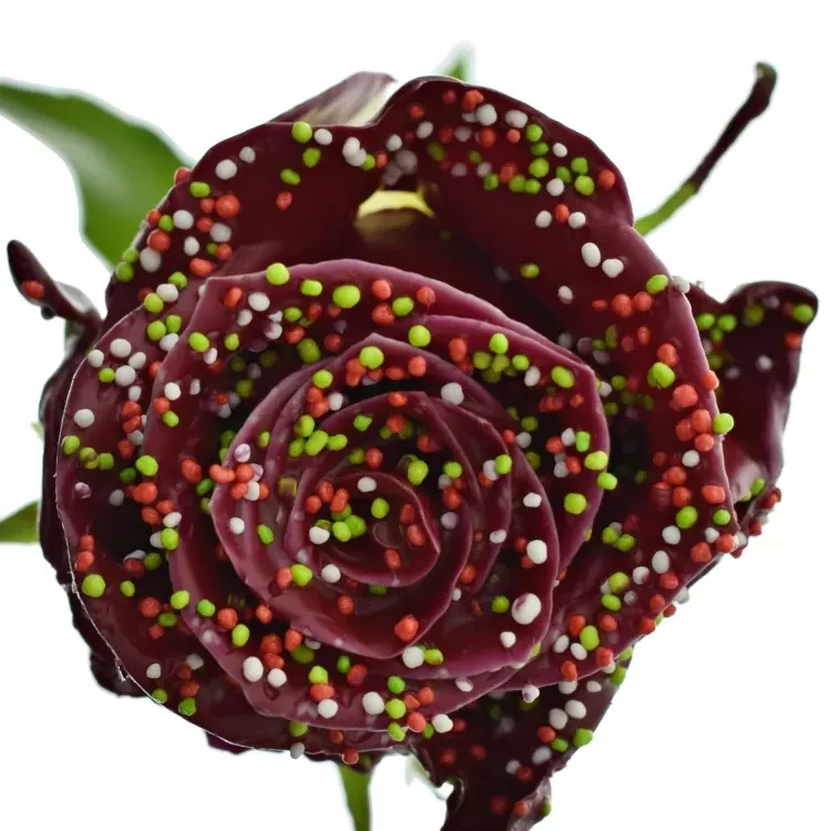 XL růže WAX BORDEAUX DISCO je odrazem neotřelého designu a kreativity, pocházející z renomované holandské dílny V.I.P. Roses Sassen. Exkluzivní růže je pečlivě připravována z prémiových krémových nebo bílých růží a obalená v bohatém bordeaux vosku, doplněném o veselé barevné tečky, které dodávají květu energický "disco" nádech. Úpravy jsou provedeny s důrazem na zdravotní nezávadnost, což zaručuje, že tato růže je bezpečná a zároveň zachovává svou přirozenou krásu.