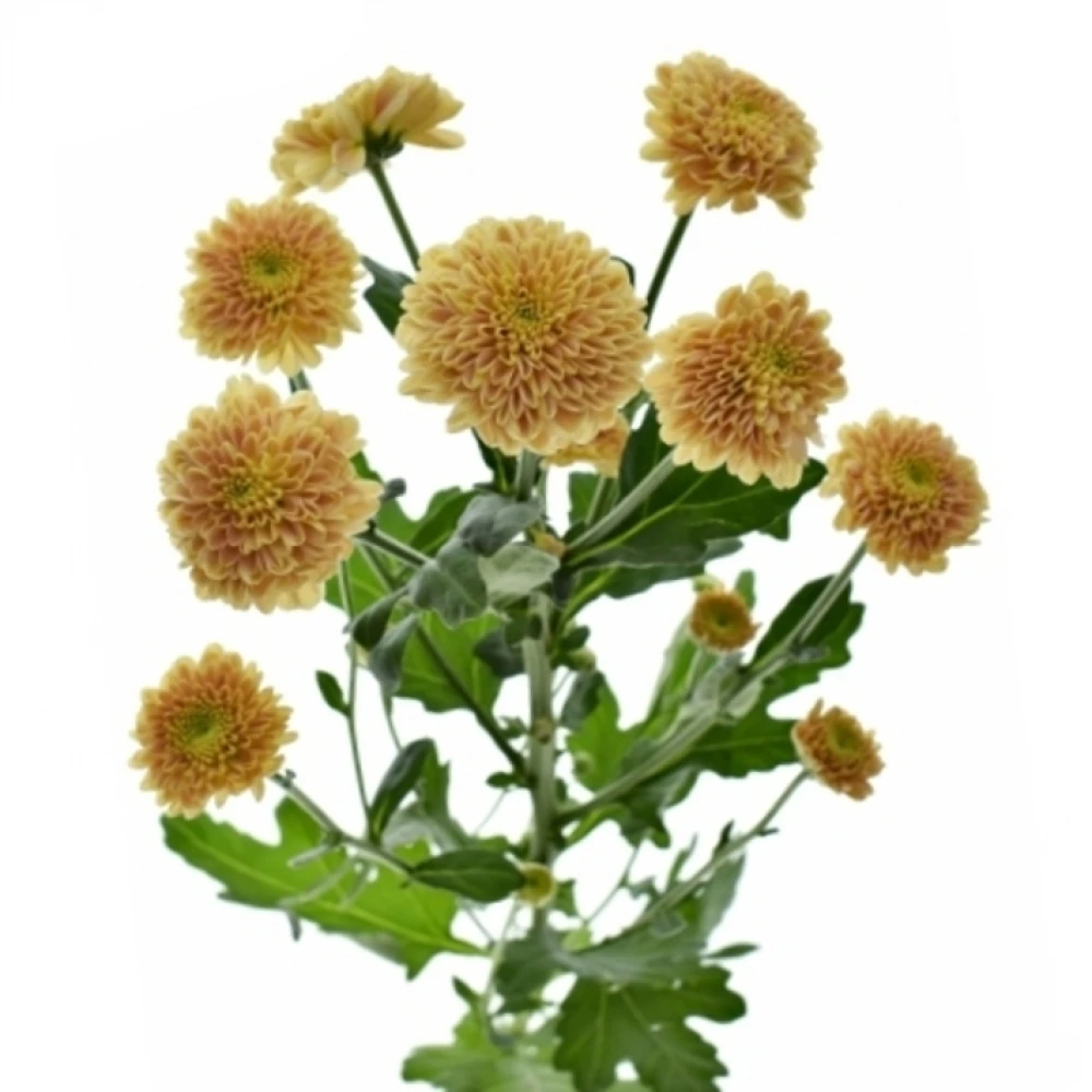 Chryzantéma San Ellison Peach se pyšní kulatými květy s měkkými broskvovými tóny, které se spojují do úchvatného celku, odrážejícího teplou a přívětivou atmosféru.