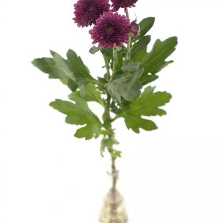 Péče o řezané chryzantemy: doporučujeme odstranit listy zasahující do vody. Vodu ve váze neměňte, ale pouze doplňujte. Stonky se neseřezávají, ale lámou nebo mačkají. Za správnou péči se Vám chryzantemy odmění až třítýdenní životností.