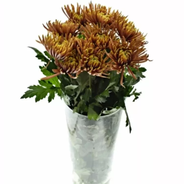 Péče o řezané chryzantemy: doporučujeme odstranit listy zasahující do vody. Vodu ve váze neměňte, ale pouze doplňujte. Stonky se neseřezávají, ale lámou nebo mačkají. Za správnou péči se Vám chryzantemy odmění až třítýdenní životností.