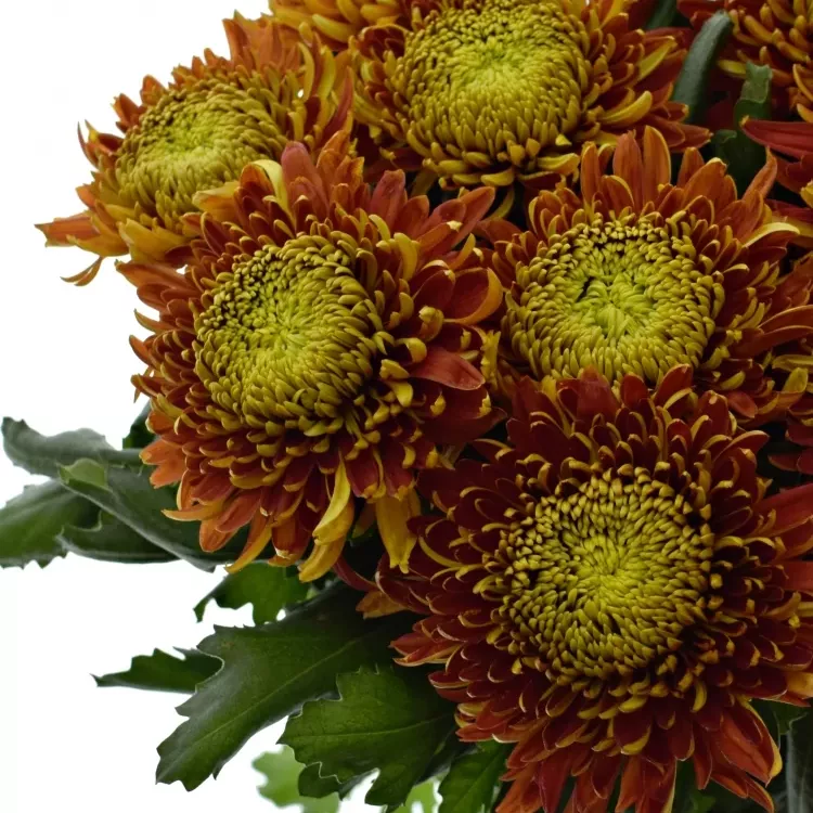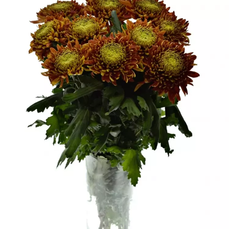 Péče o řezané chryzantemy: doporučujeme odstranit listy zasahující do vody. Vodu ve váze neměňte, ale pouze doplňujte. Stonky se neseřezávají, ale lámou nebo mačkají. Za správnou péči se Vám chryzantemy odmění až třítýdenní životností.