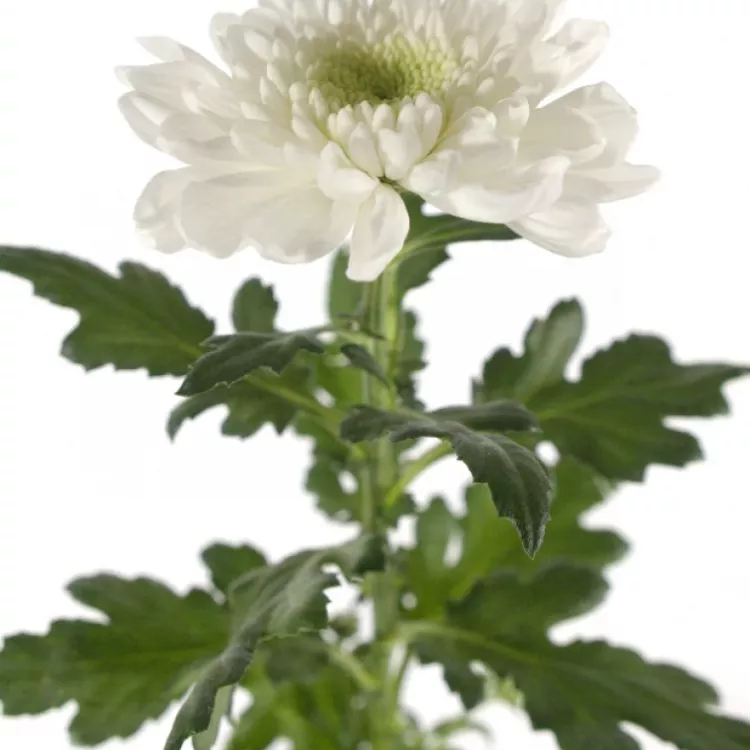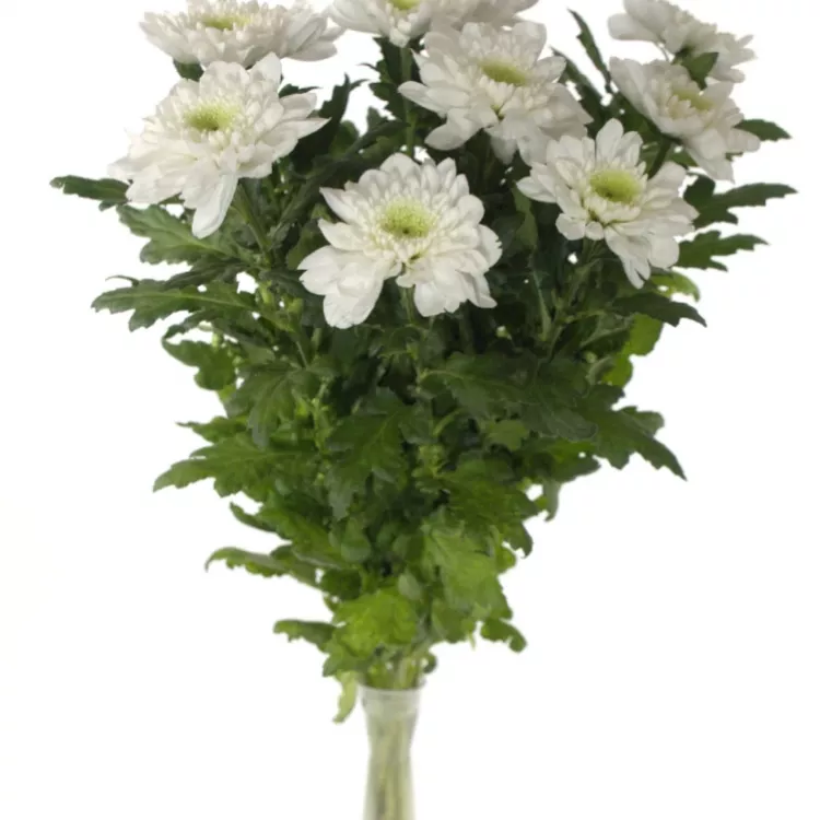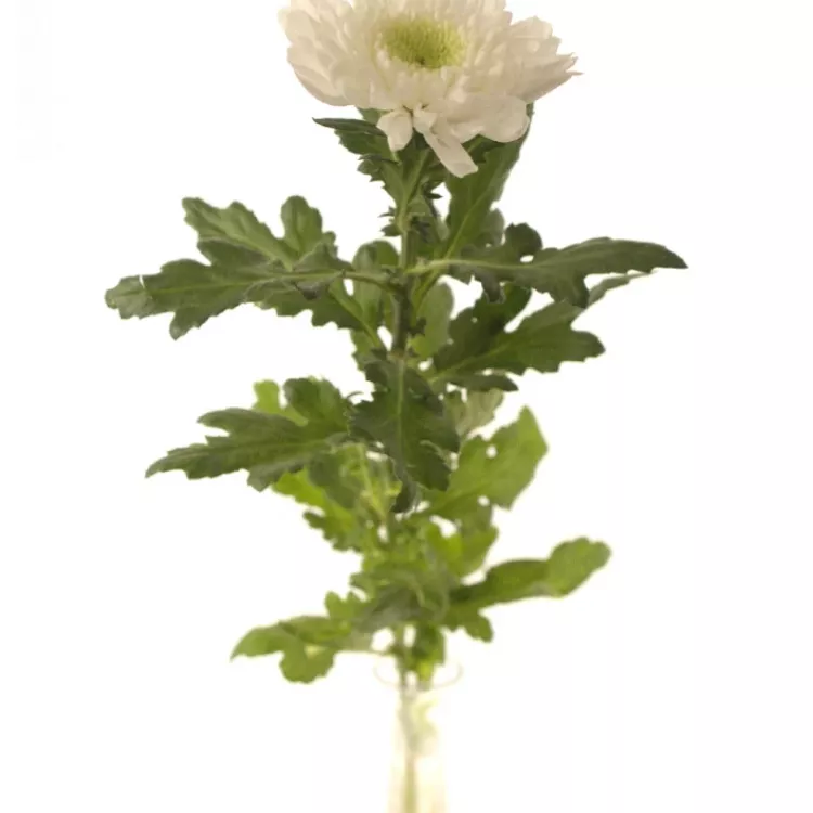 Občas stačí méně, než si myslíte. Taková bílá řezaná chryzantema umí zázraky. Na kultivaru G Wilhelmina Vás zaujmou především menší květy s vyšším počtem lístků i kontrastním žlutozeleným středem.
