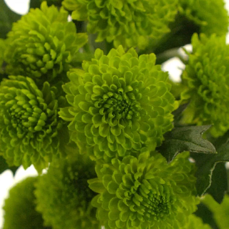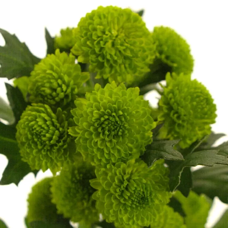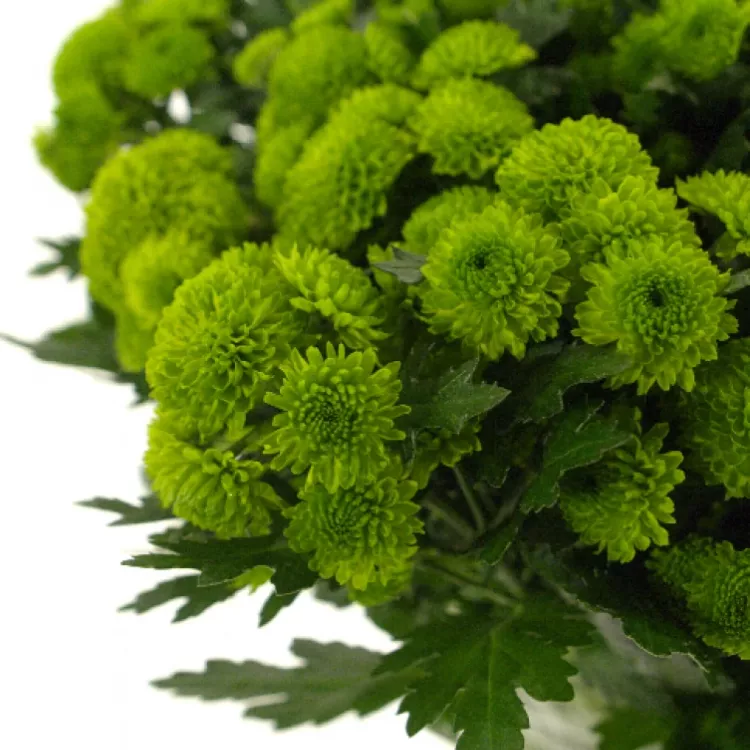 Zelená chryzantema neodmyslitelně patří do sváteční vazby. Spolu s červenými růžemi a bílým nevěstiným závojem tvoří evergreen mezi květinami k svátku a k narozeninám. San Graslly ale budou slušet např. i další barvy chryzantem od žlutých až po fialové.