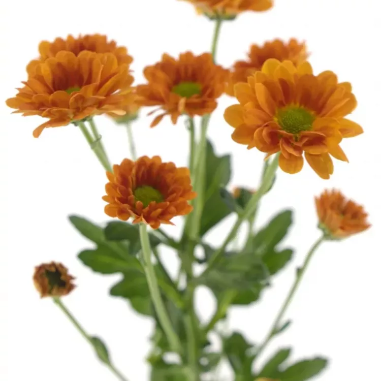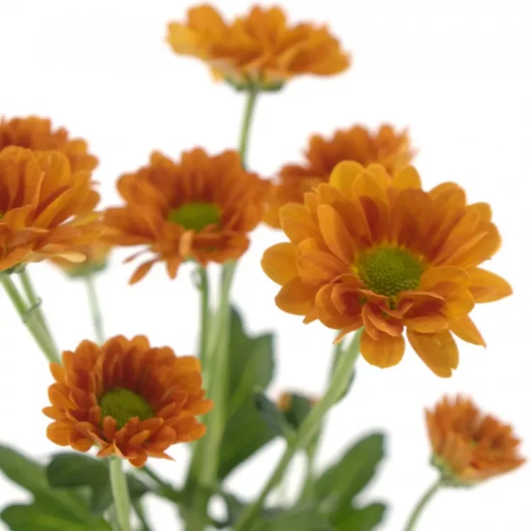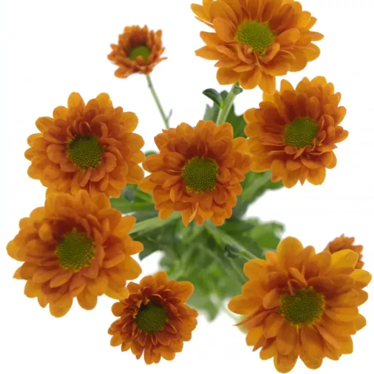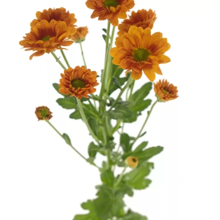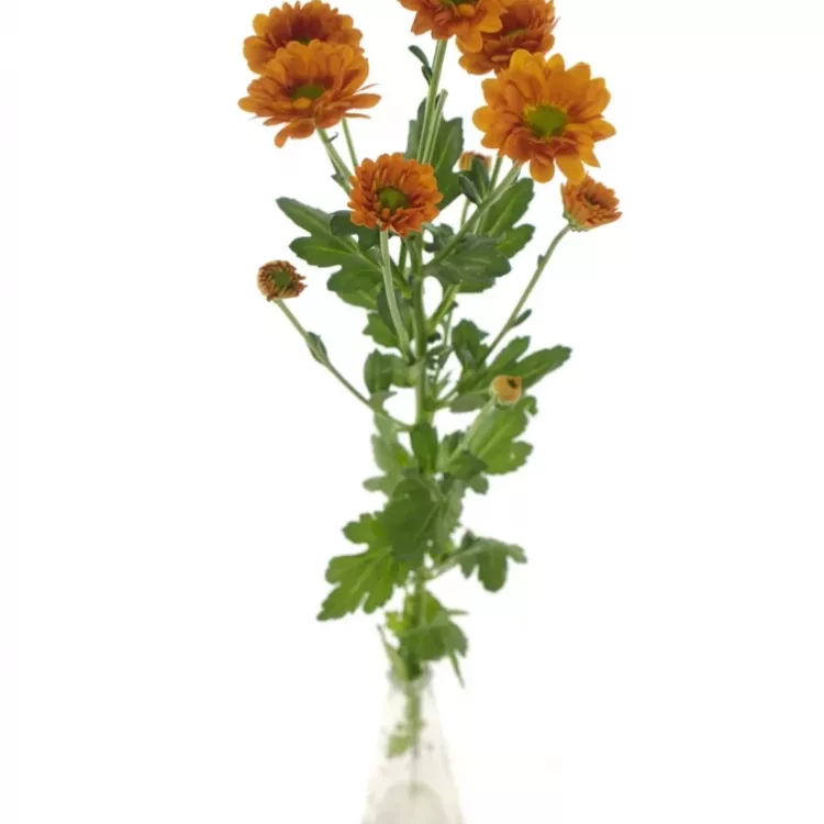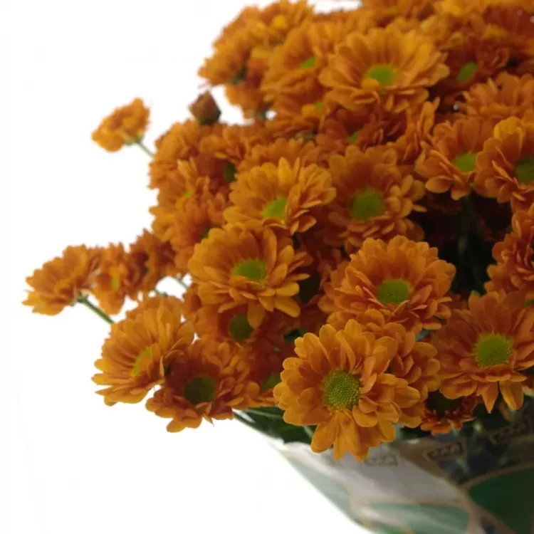 Oranžové chryzantemy v tomto odstínu jsou perfektní volbou jak do jarně, tak letně či podzimně laděných vazeb. Zda ji ve váze necháte v jedné barvě anebo k ní přimícháte několik žlutých či bílých chryzantem záleží už jen na Vás.