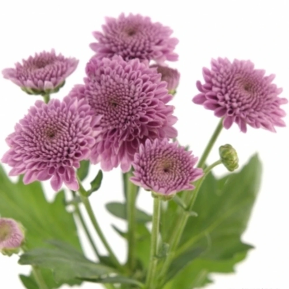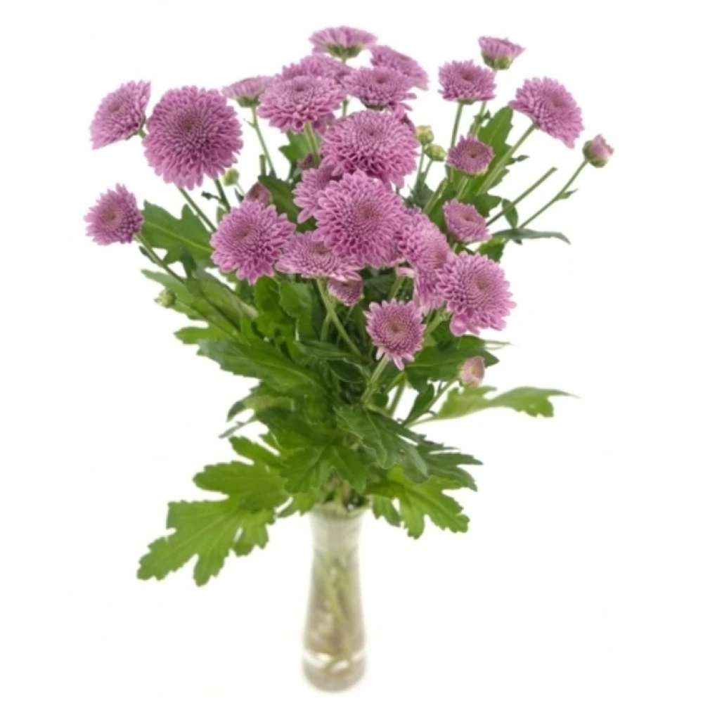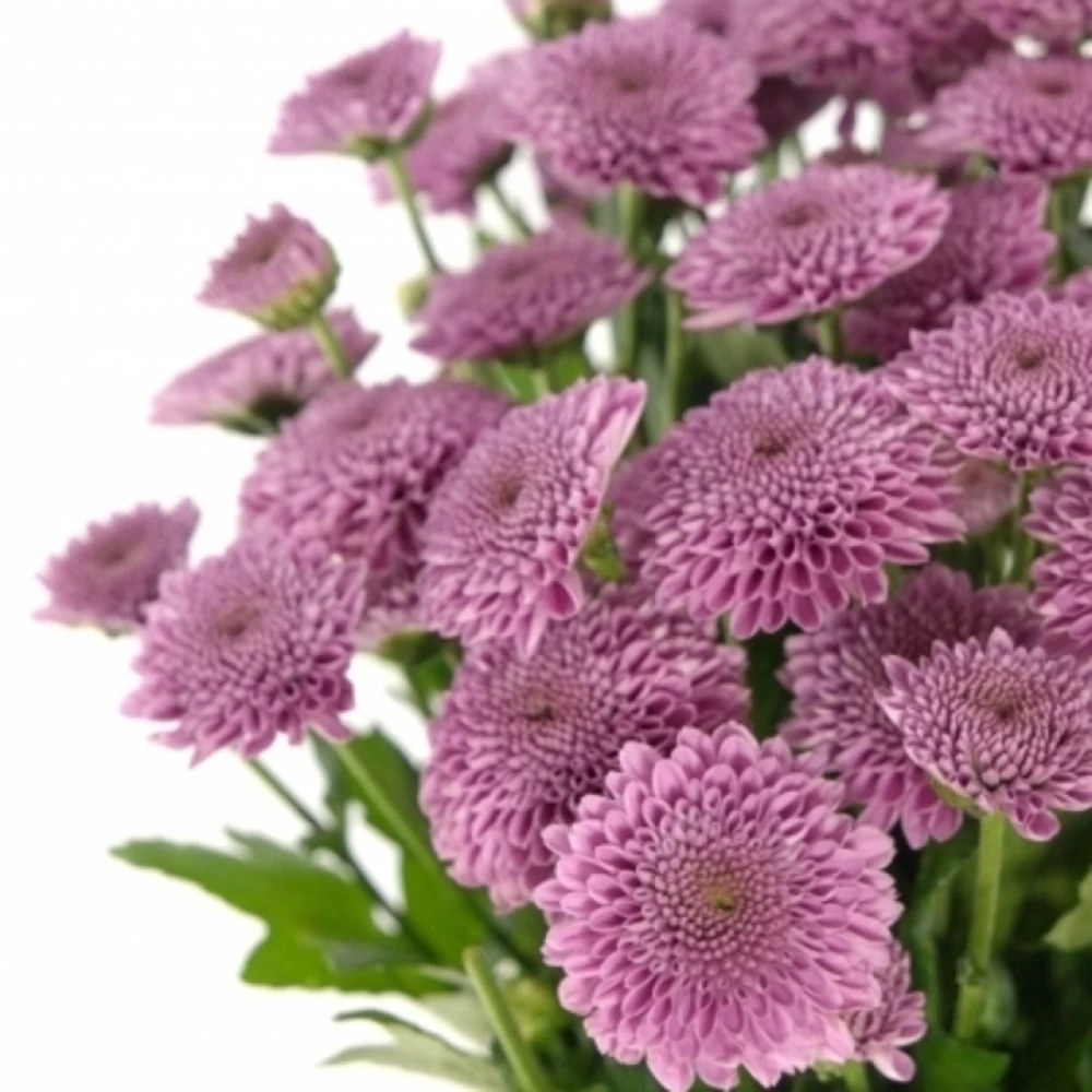 Vícekvětá chryzantéma dokáže hravě vyplnit míchanou kytici - zvednout její objem a určit kulatý tvar kytice. V květomluvě jsou chryzantémy symbolem přátelství. Světlounce fialová barva je klidná a mírumilovná.