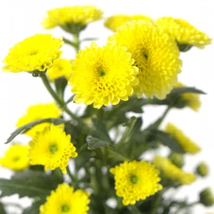 San Calimero Sunny - slunečná, řezaná žlutá chryzantema do vázy, která projasní Váš domov i náladu. Květy jsou drobnější, ale ne nejmenší, mají nádhernou skladbu květu a na jednom trsu napočítáte minimálně 7 květů.