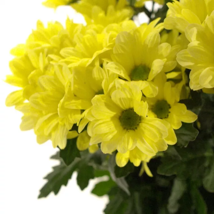 Vaši vázu, kytici pro maminku, velikonoční aranžmá. Žlutá chryzantema, ještě k tomu vícekvětá, má ve veselých kyticích čestné místo. Její hladké okvětní lístky se světle zelenkavým středem květu projasní i tmavší barvy květin (např. červené růže).