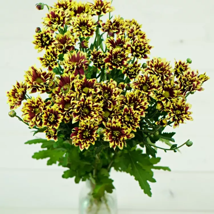 Řazené chryzantemy pro klasiky - bílé, zelené, žluté chryzantemy. Netradiční chryzantemy mnoha barev a vzorů - žíhané, fialové, vícebarevné chryzantemy. Oblíbené květiny do kulaté kytice k svátku. Máme jen ty nejkvalitnější vícekvěté chryzantemy s gramáží do 95g. Řezané chryzantemy dodáváme v balení po 5 a více kusech.