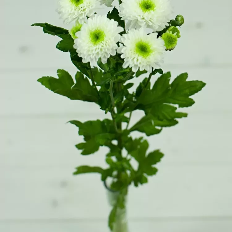 Péče o řezané chryzantemy: doporučujeme odstranit listy zasahující do vody. Vodu ve váze neměňte, ale pouze doplňujte. Stonky se neseřezávají, ale lámou nebo mačkají. Za správnou péči se Vám chryzantemy odmění až třítýdenní životností.