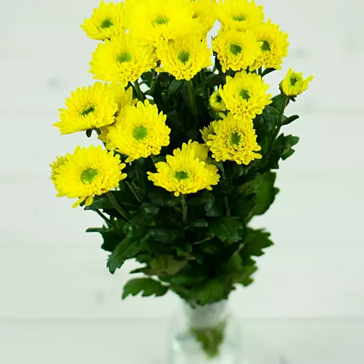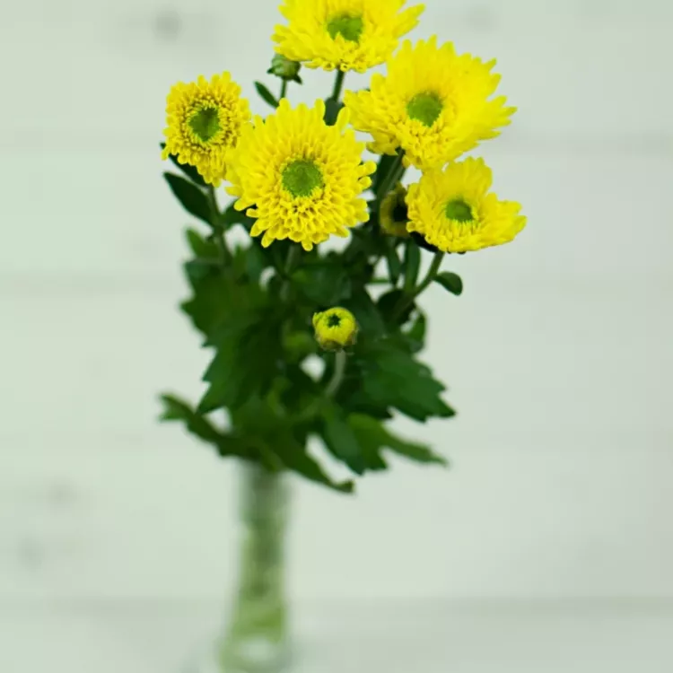 Péče o řezané chryzantemy: doporučujeme odstranit listy zasahující do vody. Vodu ve váze neměňte, ale pouze doplňujte. Stonky se neseřezávají, ale lámou nebo mačkají. Za správnou péči se Vám chryzantemy odmění až třítýdenní životností.