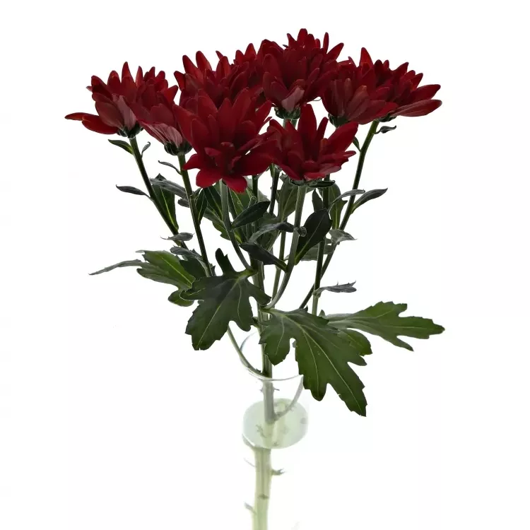 Péče o řezané chryzantemy: doporučujeme odstranit listy zasahující do vody. Vodu ve váze neměňte, ale pouze doplňujte. Stonky se neseřezávají, ale lámou nebo mačkají. Za správnou péči se Vám chryzantemy odmění až třítýdenní životností.