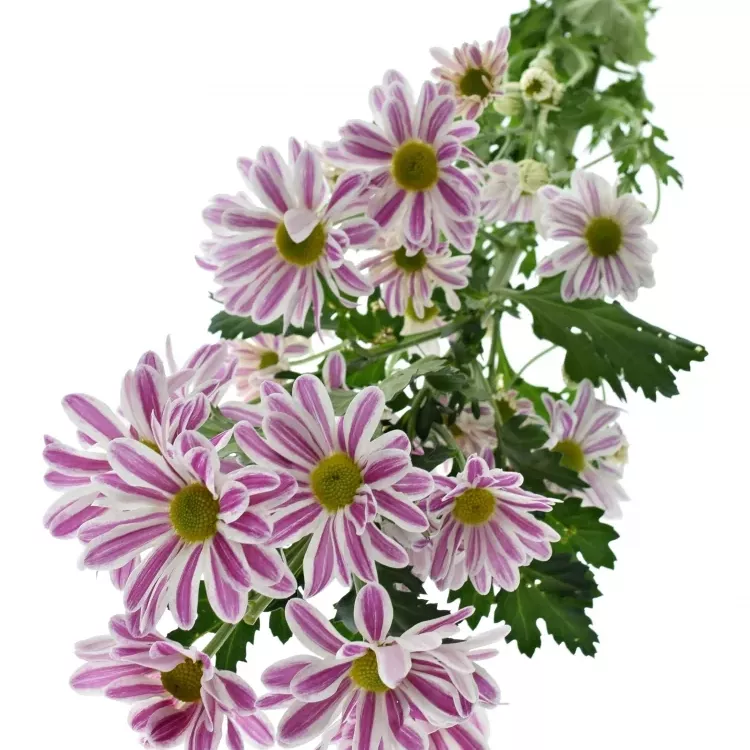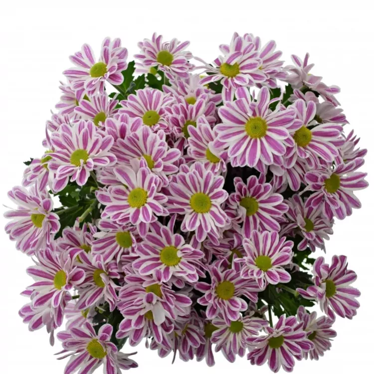 Řazené chryzantemy pro klasiky - bílé, zelené, žluté chryzantemy. Netradiční chryzantemy mnoha barev a vzorů - žíhané, fialové, vícebarevné chryzantemy. Oblíbené květiny do kulaté kytice k svátku. Máme jen ty nejkvalitnější vícekvěté chryzantemy s gramáží do 95g. Řezané chryzantemy dodáváme v balení po 5 a více kusech.