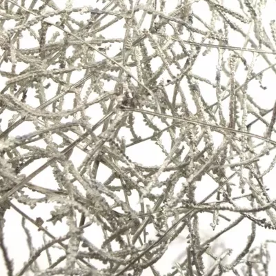 Zde se nejvíce uplatní jeho hojnost a stříbrná barva vhodná pro netradiční svatební kytice. Nejsilnější dojem dělá v převislé svatební kytici.