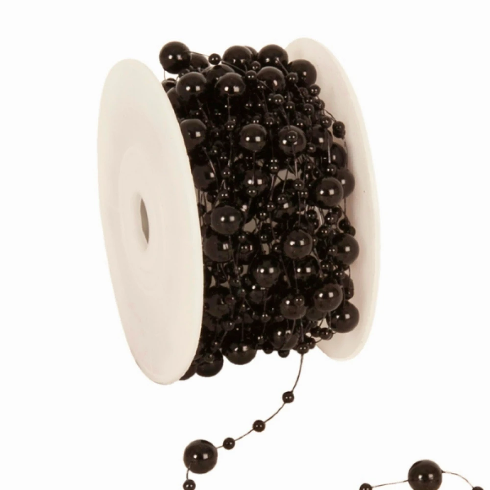 - Dekorační provázek s korálky 8 mm x 10 m černá