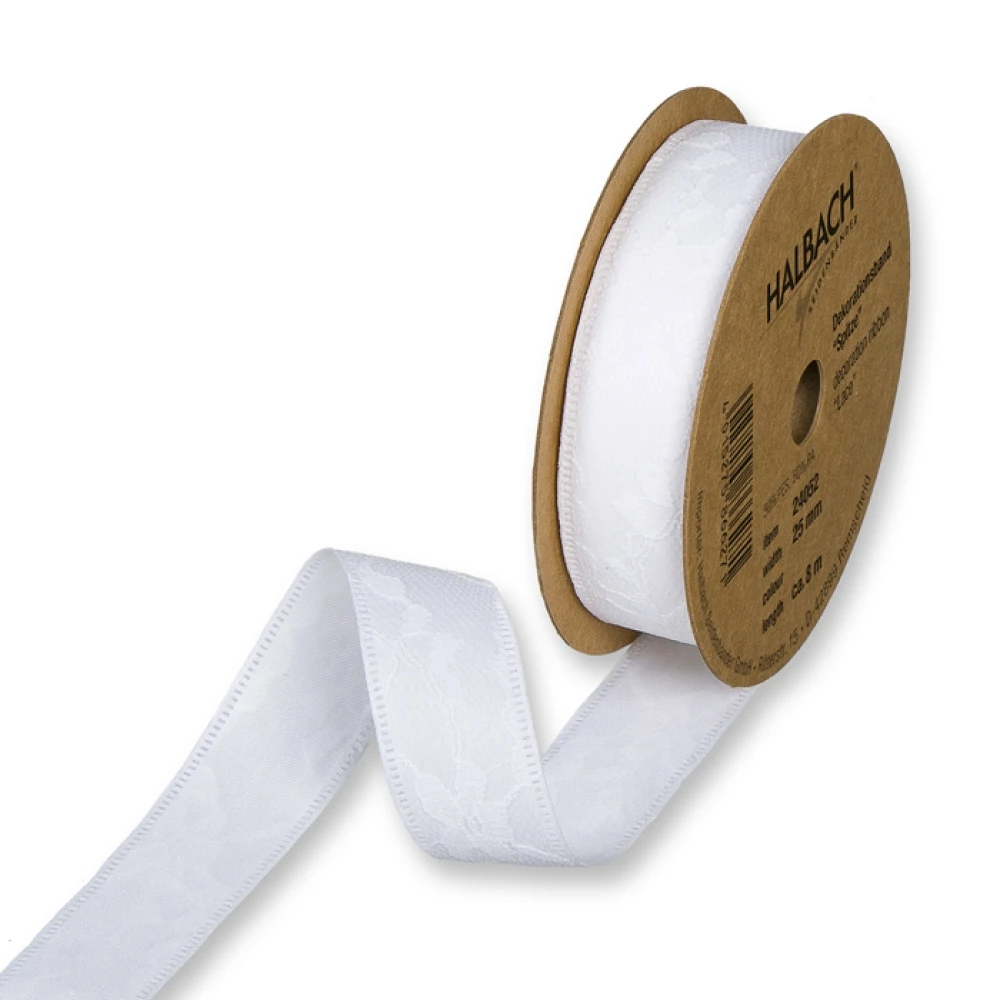 - Dekorační stuha s krajkou bílá 25mm x 8m