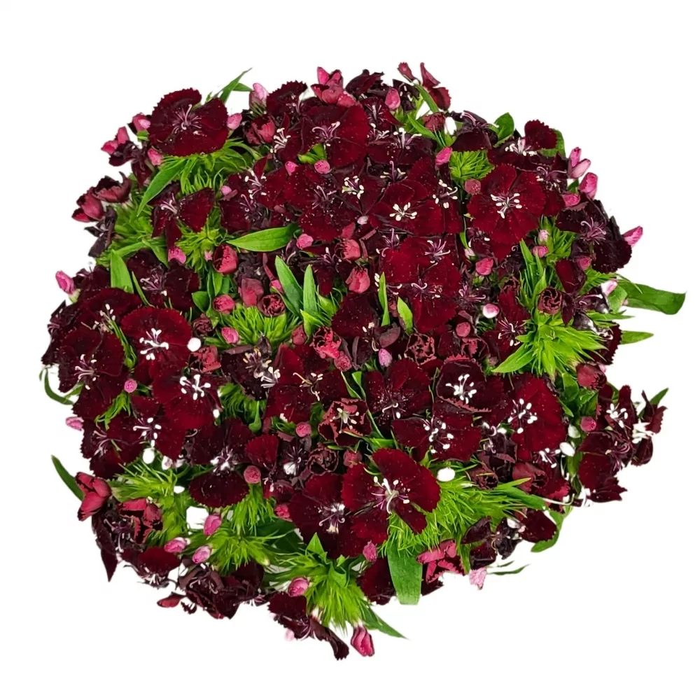 Karafiát BARBATUS SWEET WILL BLACK CHERRY je vícekvětý karafiát, který okouzlí svou hlubokou tmavě červenou barvou, která připomíná zralé višně. Tento druh je známý pro svůj hustý růst a výjimečnou odolnost, což z něj činí ideální volbu pro dlouhotrvající kytice.