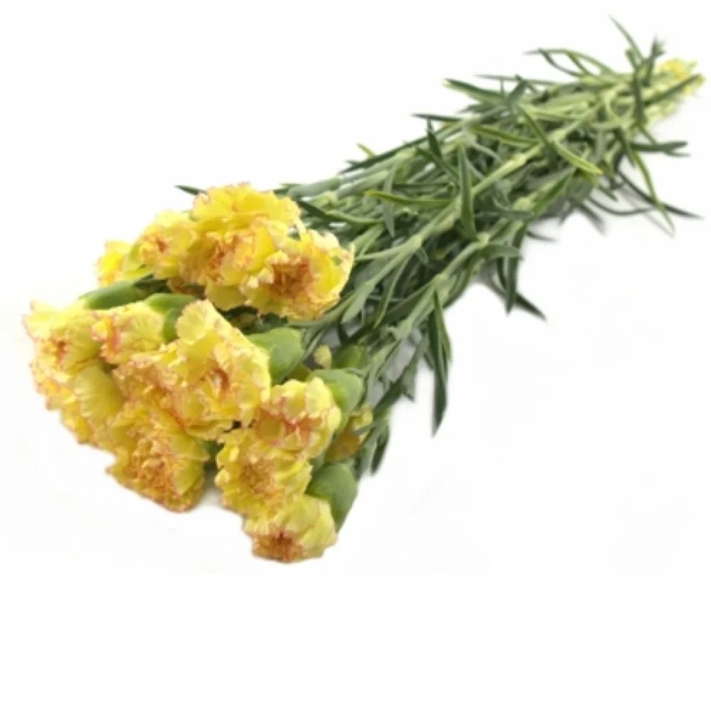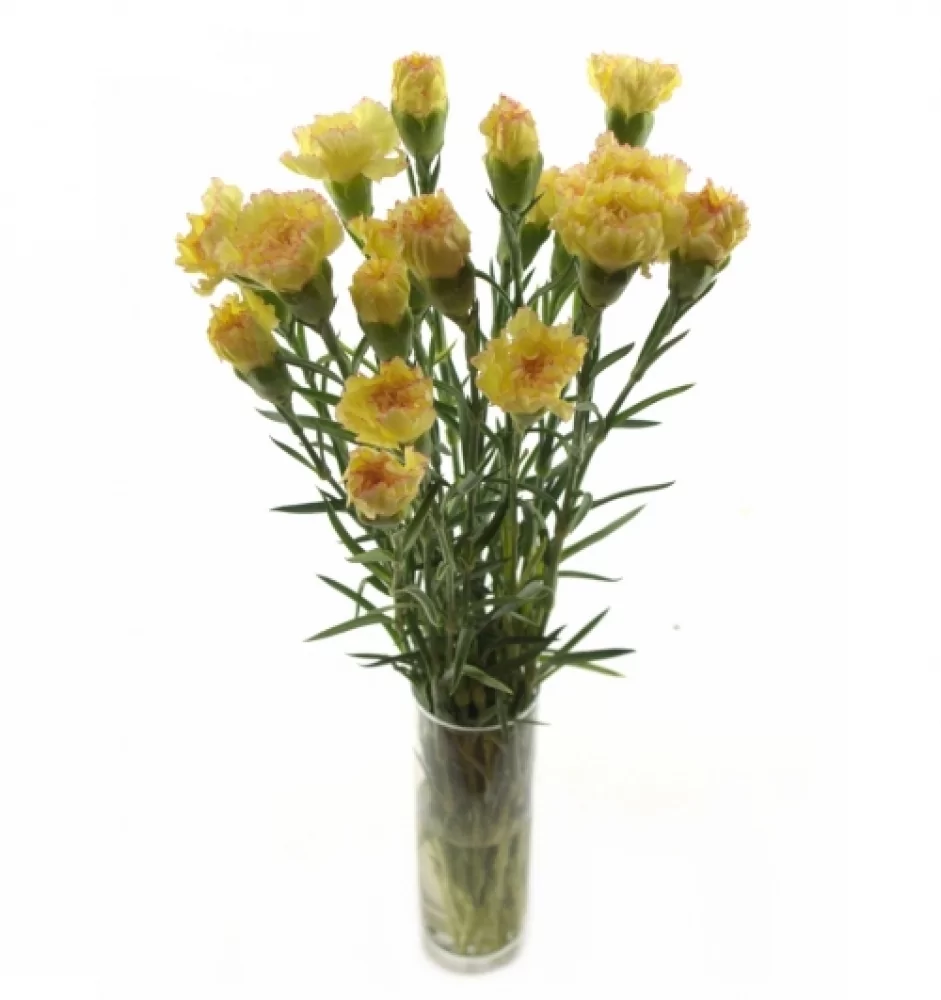 Karafiát ST Ateka nabízí jedinečný vizuál díky svým světle žlutým květům s delikátními červenými okraji. Tento jednokvětý karafiát je vyšlechtěn pro dlouhou životnost a robustnost, což z něj činí ideální volbu pro dlouhotrvající dekorace i bohaté kytice.