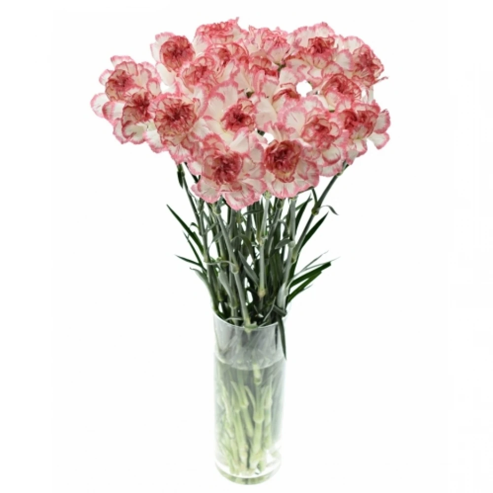 Karafiát ST Baccarat Pink, známý pro jeho jedinečné dvoubarevné okvětní lístky, které spojují bílou a živě růžovou barvu, je oblíben pro svou bohatou vůni a dlouhotrvající květy. Karafiáty jsou často využívány ve floristice pro svou schopnost vytvářet vizuálně oslnivé kytice.