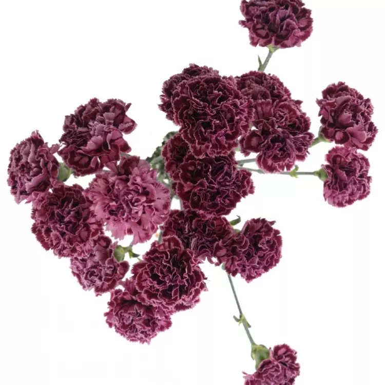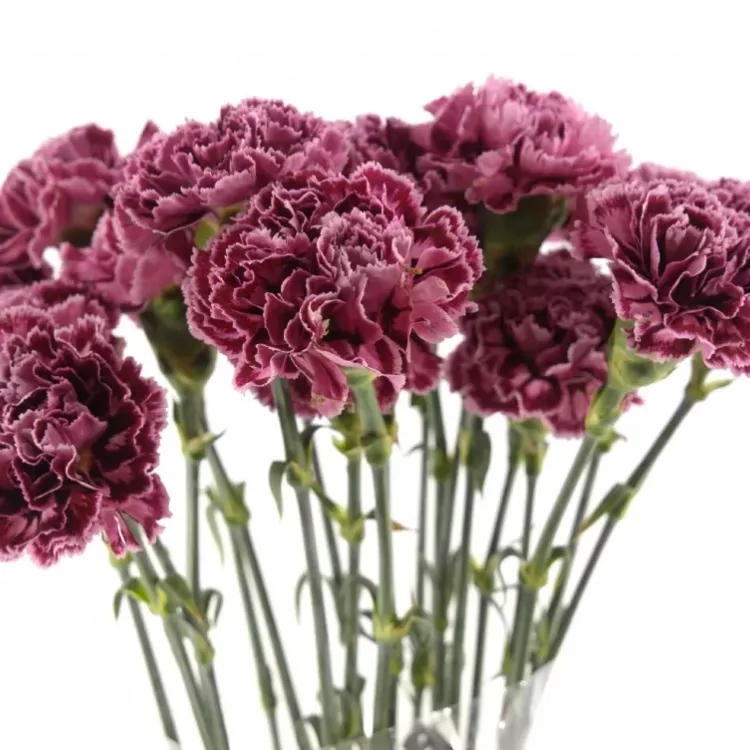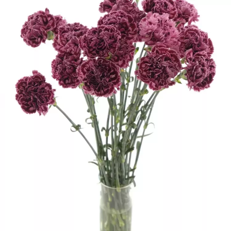 Karafiát ST CAROLE okouzluje svou hlubokou vínovou barvu, která je doplněna o jemně zvlněné okraje každého květu. Tato odrůda je známá pro svou výjimečnou odolnost a schopnost udržet si svěžest po dlouhou dobu. Velké, plné květy jsou ideální pro dekorativní účely a často se využívají v aranžmá pro speciální příležitosti.