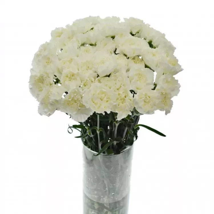 Karafiát ST MONT BLANC je vrchol elegance, který oplývá bohatými, křehkými vrstvami čistě bílých okvětních lístků, jež připomínají sněhovou pokrývku vrcholů hory Mont Blanc. Karafiáty jsou známé svou robustností a dlouhou životností.