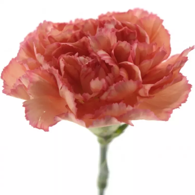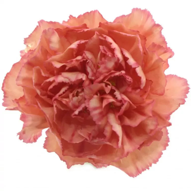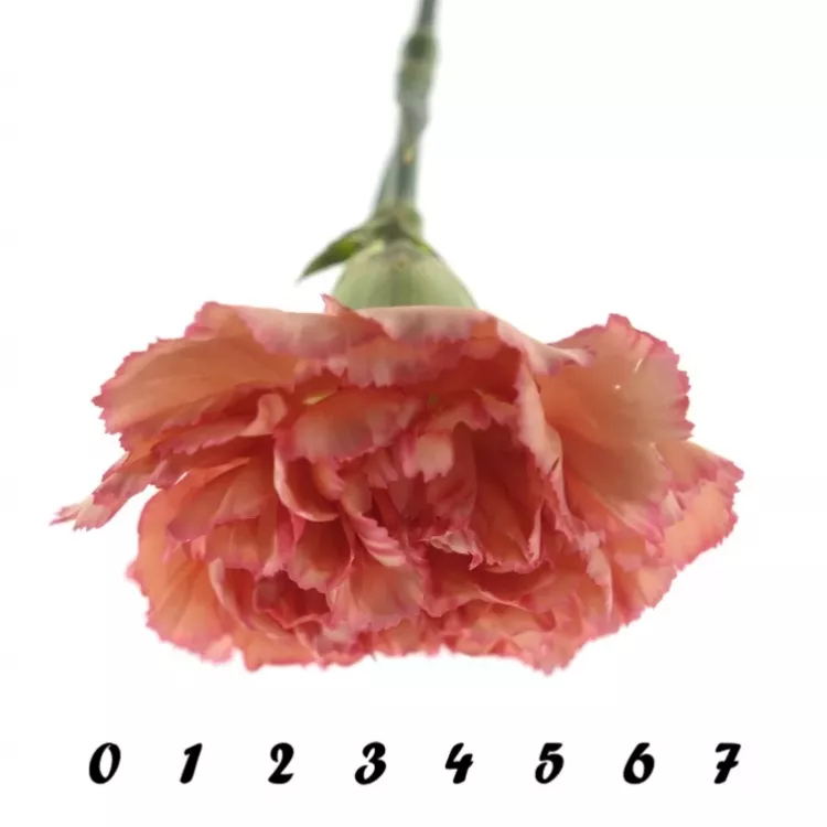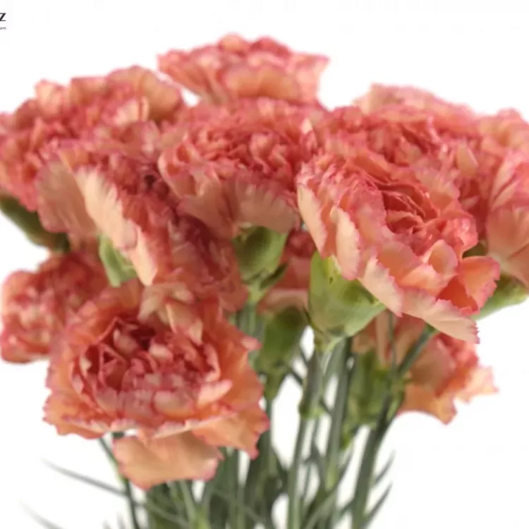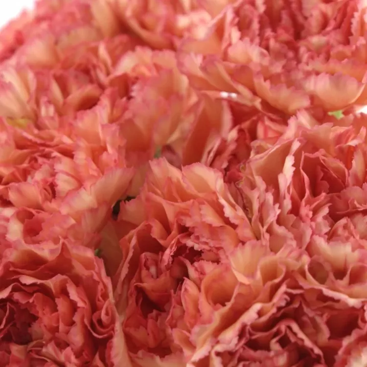 Karafiát ST MR ADAMA se vyznačuje svými jedinečnými růžově-oranžovými květy s jemnými bílými akcenty na okrajích, které připomínají barvy svítání. Jeho květy jsou plně dvojité, což znamená, že nabízí bohatý a plný vzhled, ideální pro sofistikované floristické výtvory a svatební kytice.