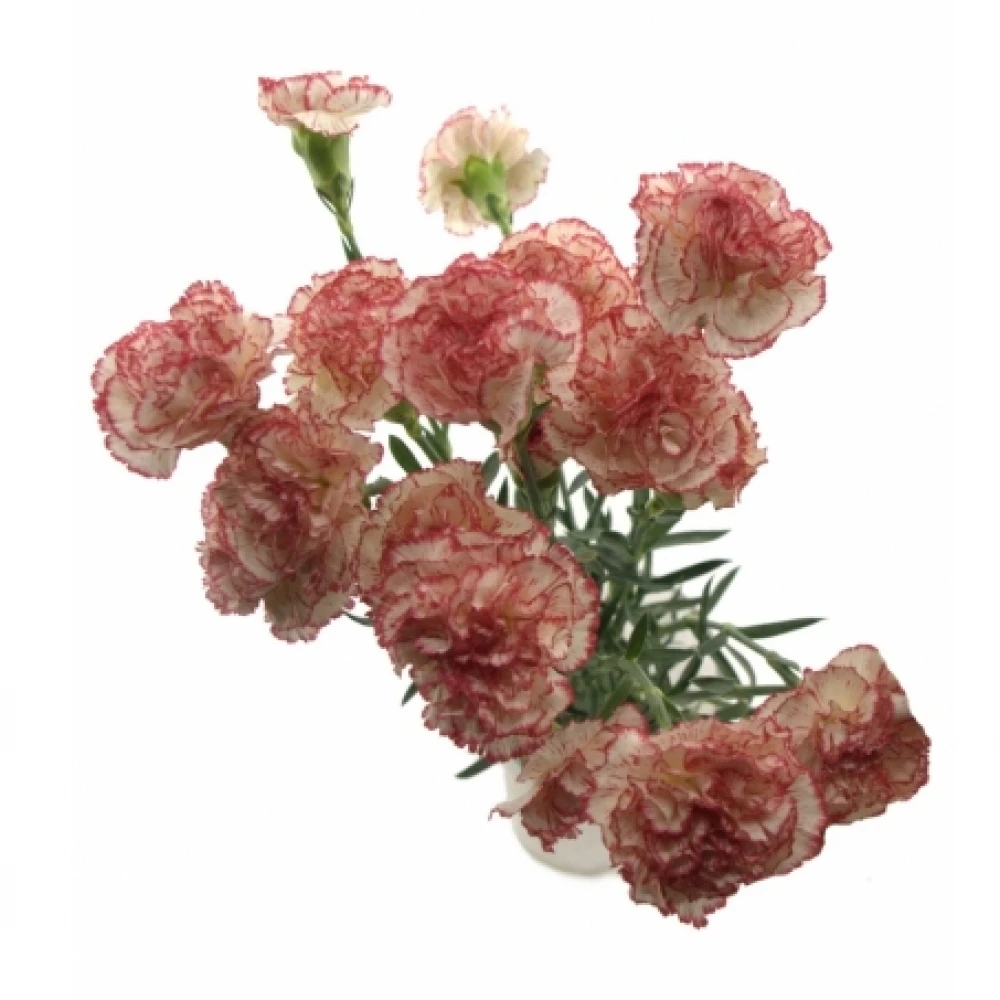 Karafiát ST MUDAH ROSA je známý pro své výrazně zbarvené okvětní lístky s růžovo-bílými zvlněnými okraji, které mu dodávají unikátní vzhled. Tento druh karafiátu se hodí jak pro sváteční, tak i pro každodenní květinové aranžmá díky své robustní struktuře a dlouhé životnosti ve váze.