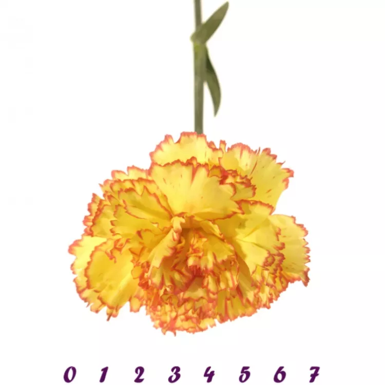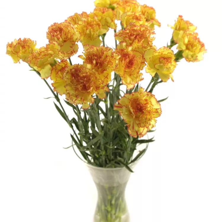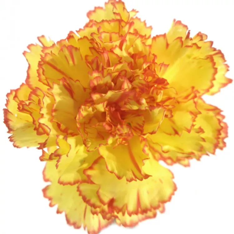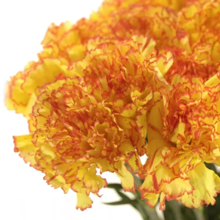 Karafiát ST Perugino je ohromující svými ohnivě žlutými květy s živou červenou kresbou po okrajích. Jednokvětý karafiát s robustním stonkem je ikonou trvanlivosti a estetické krásy. Jeho živé barvy a vysoce definovaný vzhled přidávají jakékoli kytici exotický nádech a jsou ideální pro zvýraznění jemnějších odstínů ve florálních aranžmá.