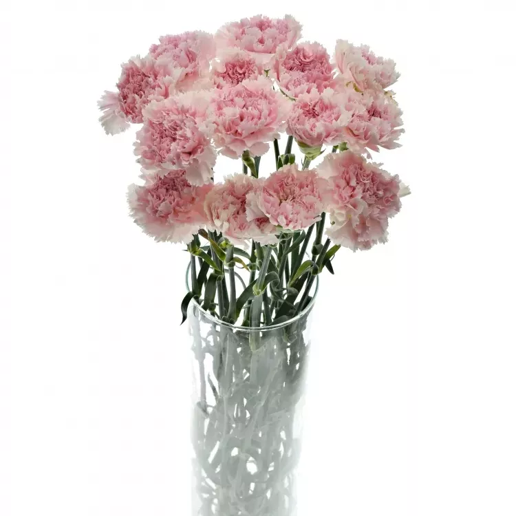 Péče o řezané karafiáty: těmto květinám stačí pravidelně měněná kohoutková voda. Nezapomeňte odstranit listy zasahující do vody. Za správnou péči se Vám odmění až třítýdenní životností.