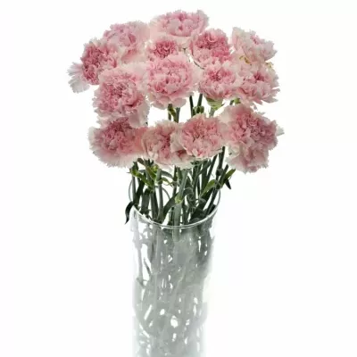 Karafiát ST PINK BIZET přitahuje pohledy svými jemně růžovými květy, které mají na okrajích jemnější tóny bílé, připomínající první jarní mráz na okvětních lístcích. Květy jsou známé pro svou robustní strukturu a mohutný květ, což jim dodává vizuální objem a činí je středem pozornosti v každé květinové kompozici.