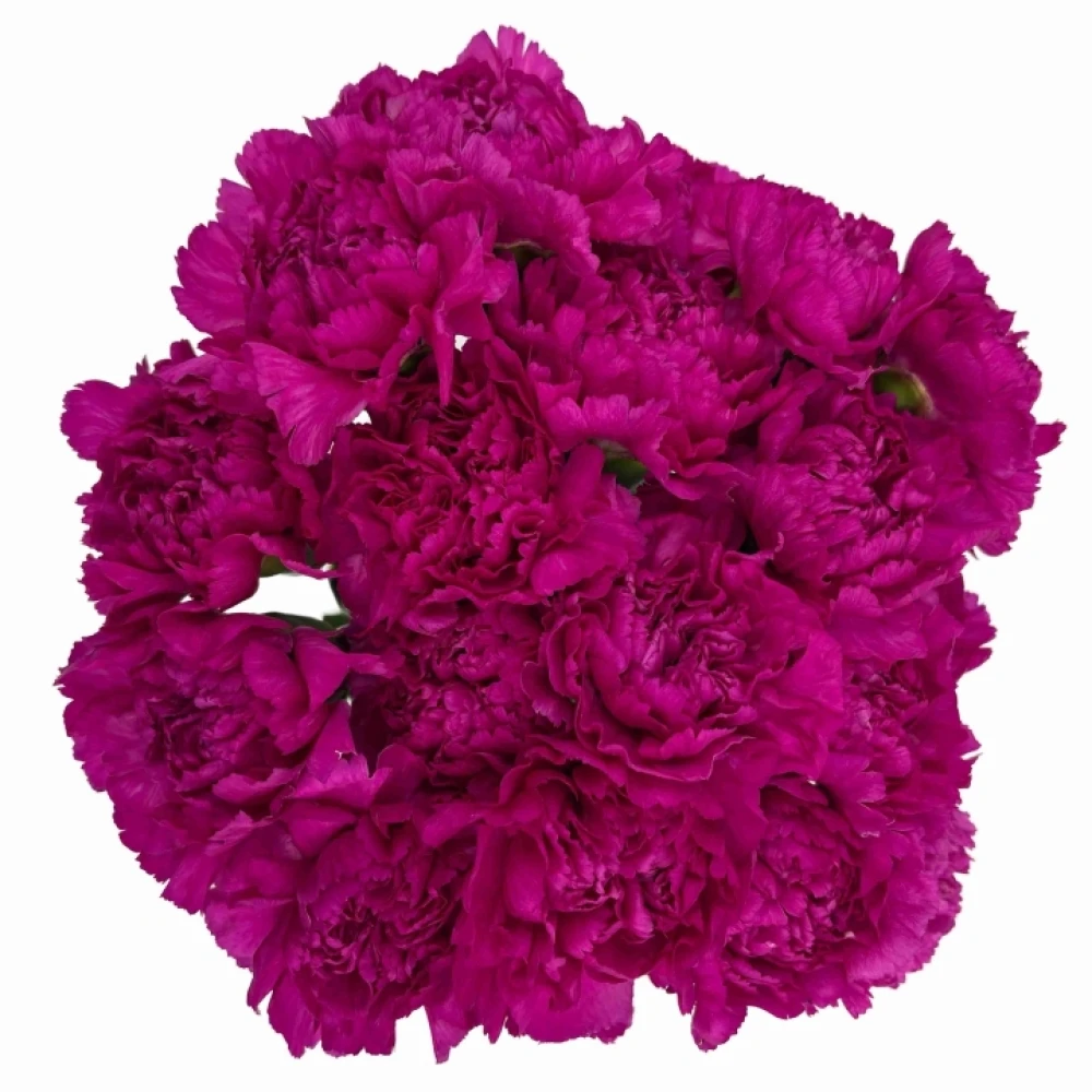 Karafiát ST Tiepolo Fucsia přitahuje pohledy svou živě fuchsiovou barvou, která ozařuje každý prostor svým nápadným vzhledem. Jeho bohaté, zvlněné okvětní lístky jsou pevně uspořádány do klasického, plného tvaru, což je typické pro tuto odrůdu.