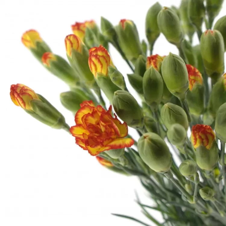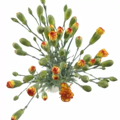 Je libo kombinaci ohnivých barev? Tyto vícekvěté karafiáty jsou právě pro Vás. Jejich drobné květy díky souhře červené a žluté nezaniknou, naopak probudí k životu i ten nejtmavší kout.