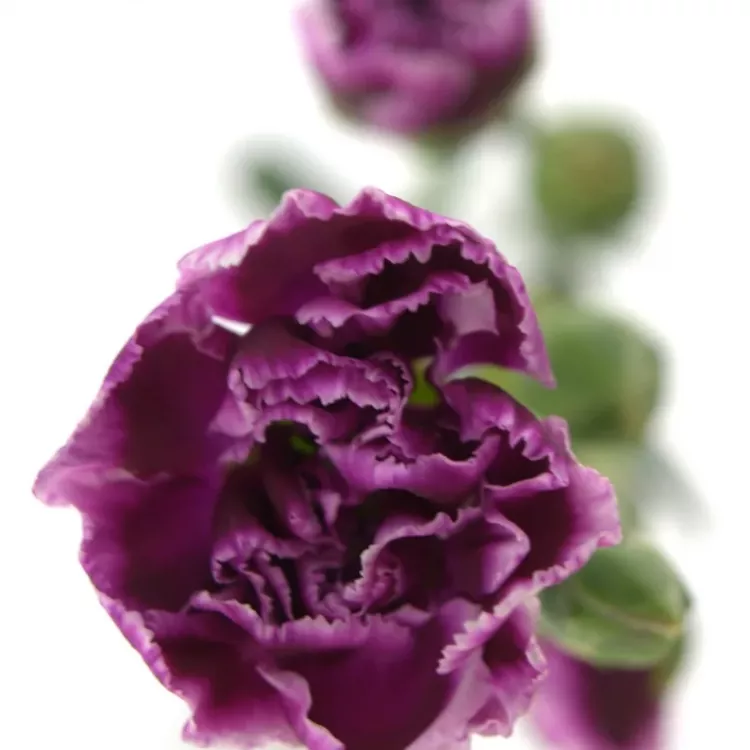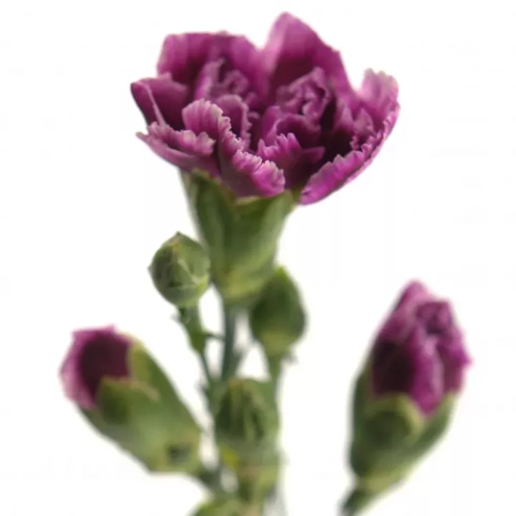 Tam se budou tyto fialové karafiáty náramně hodit. Do vázy, do míchané kytice, do kytice karafiátů? Vše je dovoleno. Drobné květy zdobí nenápadné bílé "žíhání", které dělá karafiát speciálnějším.