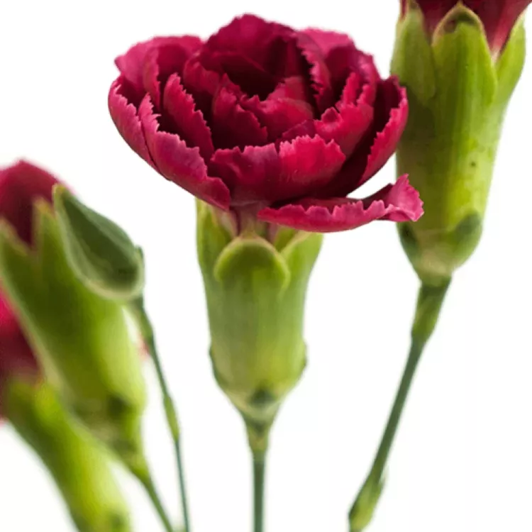 Karafiát TR STAR CHERRY TESSINO je vícekvětý karafiát charakteristický svými bohatými, tmavě červenými květy s jemným purpurovým okrajem. Tento druh je vysoce ceněn pro svůj impozantní vzhled a schopnost přidat dramatičnost každé kytici nebo aranžmá.