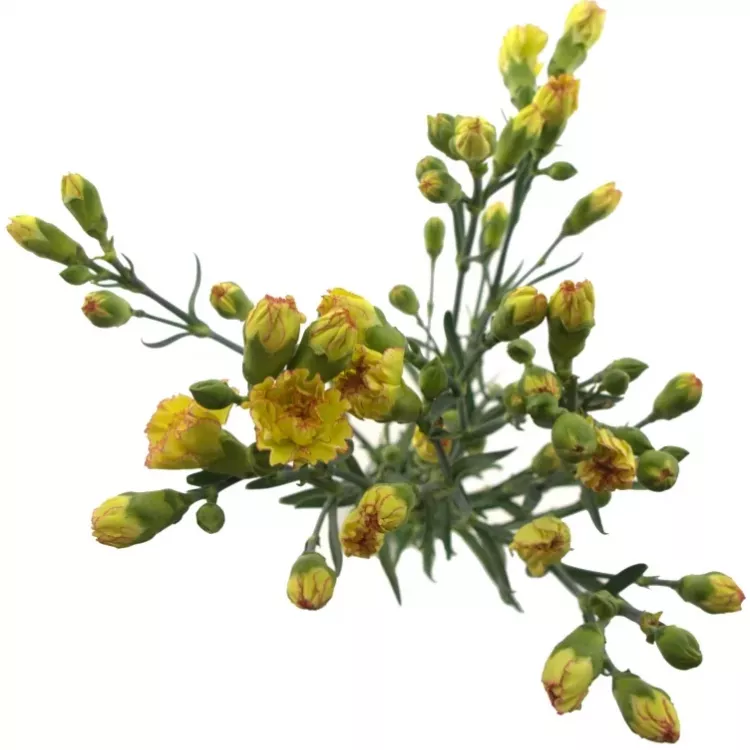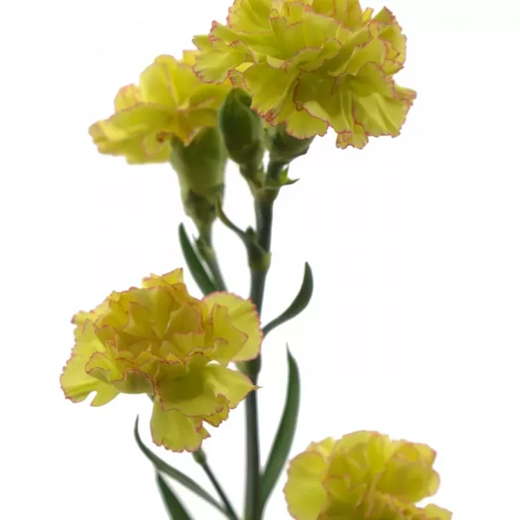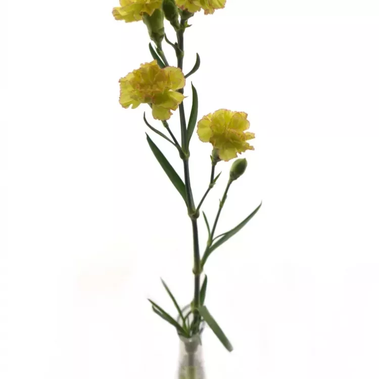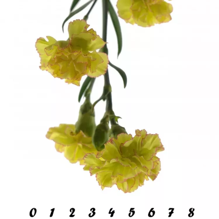 Karafiát TR Tarufi okouzlí svými svěžími limetkově zelenými květy, každý zdobený delikátní červenou linkou po okrajích. S více než šesti květy na stonku přináší vícekvěté karafiáty do vašeho domova nejen objem, ale i vizuální rozmanitost. Robustní a vitální květy slibují dlouhou výdrž a jsou perfektní pro rozmanité floristické aranžmá nebo jako středobod pozornosti ve váze.