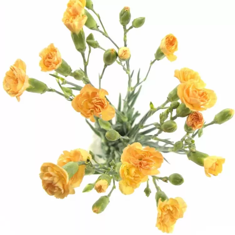 Interiér tyto karafiáty projasní nádhernými meruňkovými květy s řasenými okvětními lístky. Jakmile jim budete dělat společnost u stolu, všimnete si zajímavého růžového žíhání, které se jemně ztrácí v záplavě meruňkové.