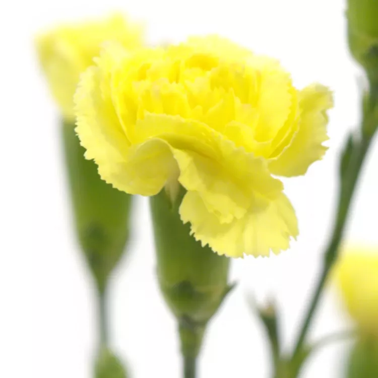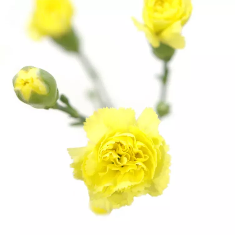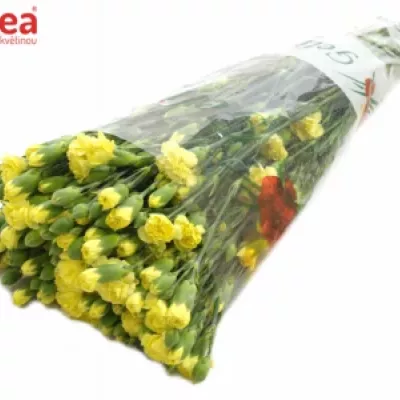 Každá kytice bude mnohem zářivější a veselejší, pokud na tyto žluté karafiáty nezapomenete. Květy jsou menší a bohatě řasené. Na jednom trsu se můžete těšit minimálně na čtyři zářivá a voňavá "sluníčka".